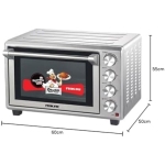• This oven comes with accessories which are round tray, bake tray, wire rack, tray handle, rotisserie fork, and rotisserie handle.